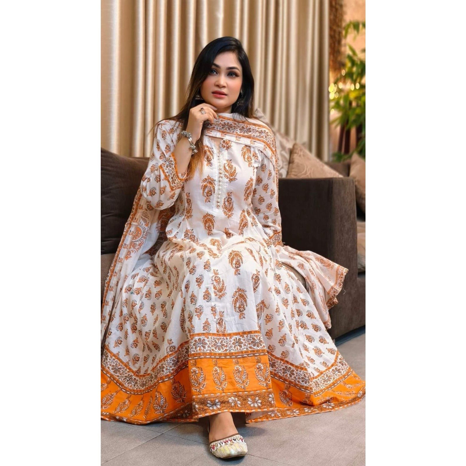 সুতি কাপড়ের গ্রাউন্ড/গোল থ্রি পিস